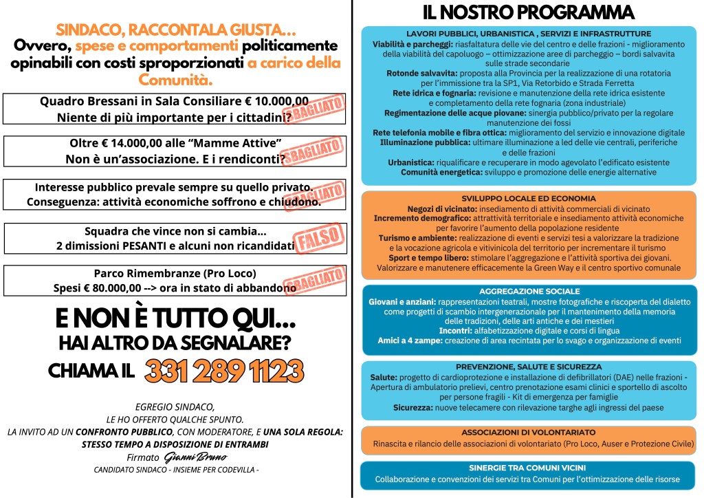 Inoltre, nella presentazione della squadra attuale di “Codevilla Attiva” vediamo mancare delle persone rispetto alla squadra del 2019 (in aggiunta ai 2 consiglieri ritiratisi).
