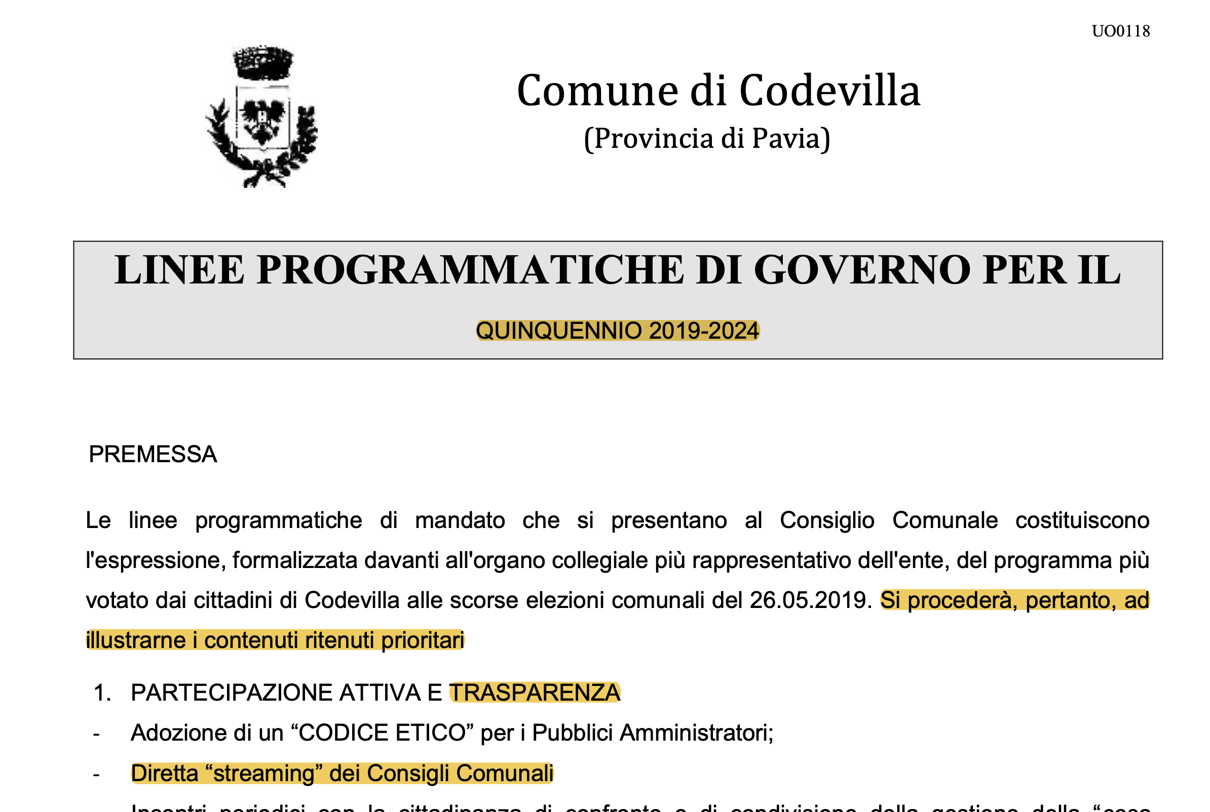 Un punto del precedente programma elettorale di Dapiaggi prevedeva proprio la trasmissione in diretta dei consigli comunali.